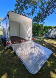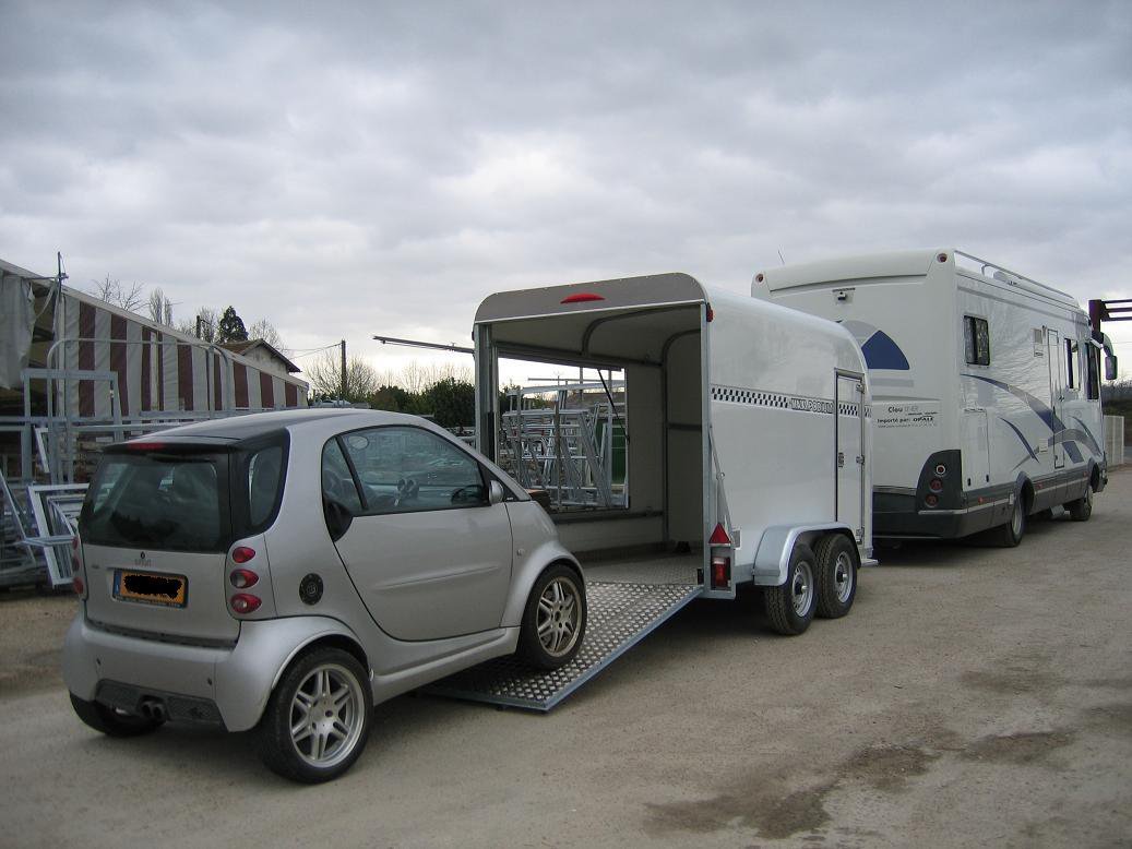 Een kleine auto vervoeren? Ook dat kan met de Fautras gesloten aanhangwagen. Ideaal als je een (extra) auto wilt meenemen.