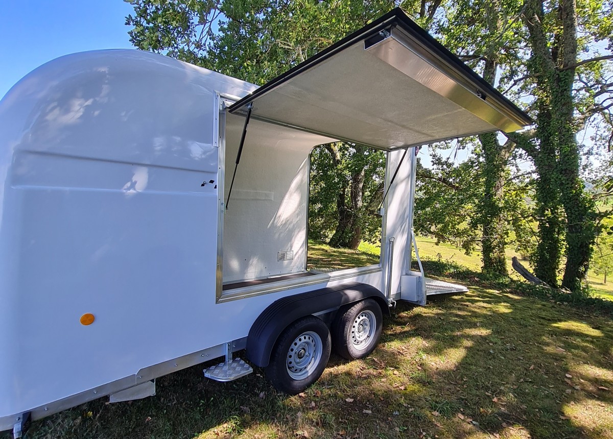 Het grote model is interessant om te gaan ombouwen tot horeca aanhanger of voor de detailhandel zoals een verkoopwagen voor op de markt (marktwagen). Denk ook aan een snackwagen, patatwagen, catering aanhanger, evenementencateringwagen, drankenwagen, presentatiewagen, pizzawagen, koffieverkoopwagen, broodjeswagen, grillwagen, bloemenwagen, kassawagen, poffertjeswagen, viswagen, en ga zo maar door. Fautras aanhangers kunnen uitgevoerd worden met een verkoopklep aan de zijkant, maar je kunt een basis gesloten aanhanger ook zelf aanpassen naar jouw eigen ontwerp.