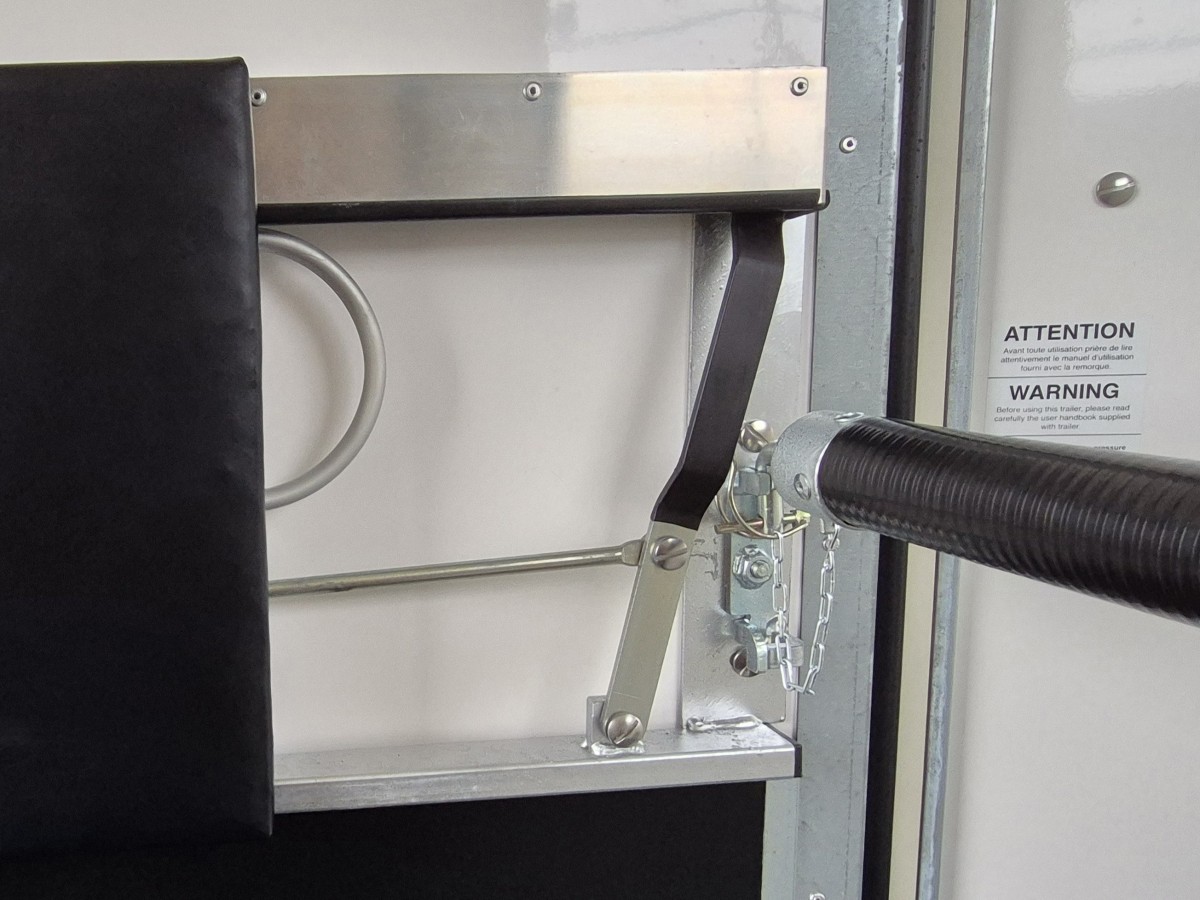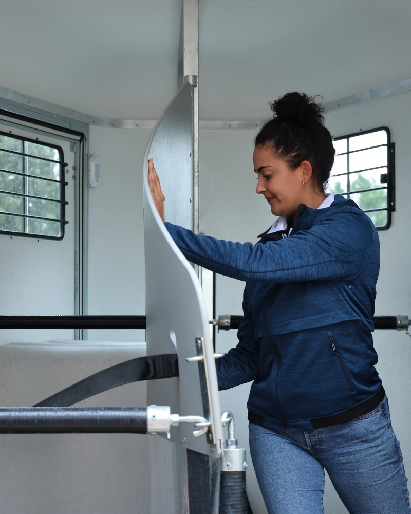 Dit komt door het innovatieve AID System™ die alleen Fautras paardentrailers hebben. Hoe werkt het? Vooraan in de trailer bij het paard kun je via een hendel de achterstang sluiten, maar ook weer losmaken!