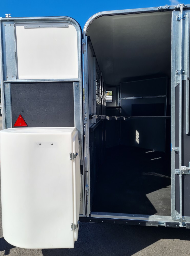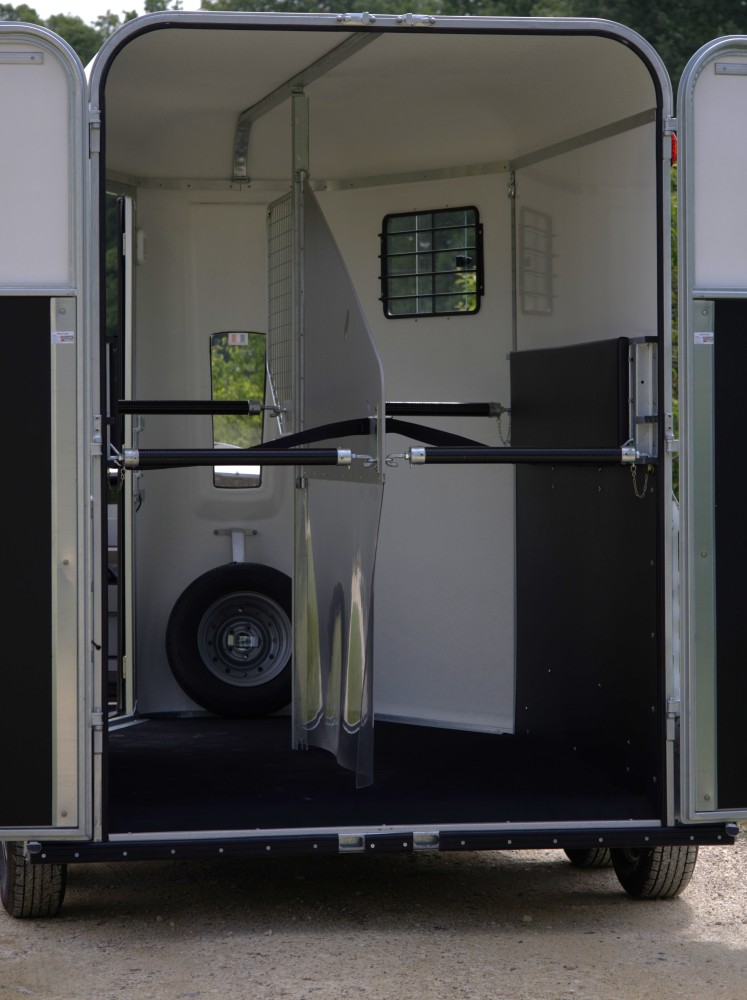 Jouw paard kan niet (meer) langs de trailer weglopen doordat de achterdeuren als een sluis kunnen dienen. Ook kan de trailer tegen de opening van een poort, stal of schuurdeur worden gezet.