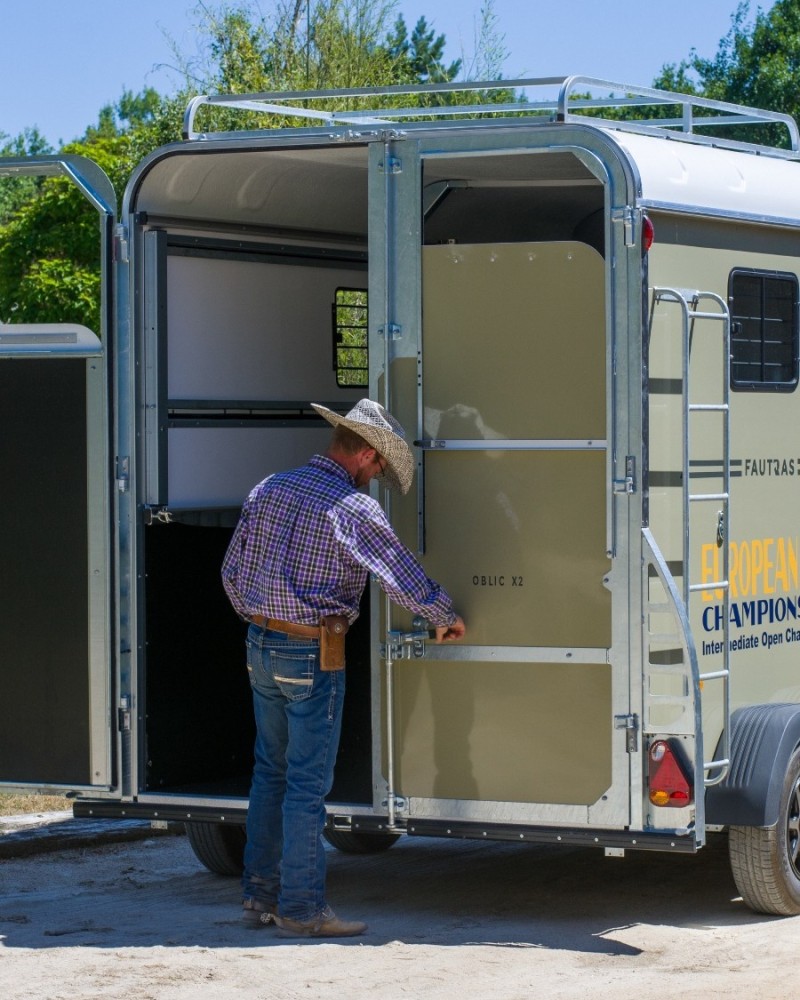 Paarden worden graag schuin vervoerd. Deze optie biedt een groot aantal modellen van Fautras.